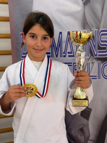 Ana je još jednom potvrdila svoj sjajni niz! Nastupila je sigurno, borbeno i koncentrirano u svakoj borbi te zasluženo osvojila zlatnu medalju u svojoj kategoriji. Pokazala je zrelost i tehničku kvalitetu na razini iskusnih natjecatelja – bravo, Ana!